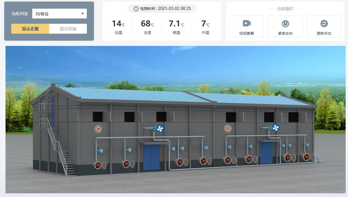通過(guò)與小型氣象站和通風(fēng)控制系統的集成,可以實(shí)現對糧食的分倉保管的精細化管理。通過(guò)對通風(fēng)控制器及通風(fēng)控制機柜的遠程控制,可以實(shí)現對倉房通風(fēng)的自動(dòng)控制。